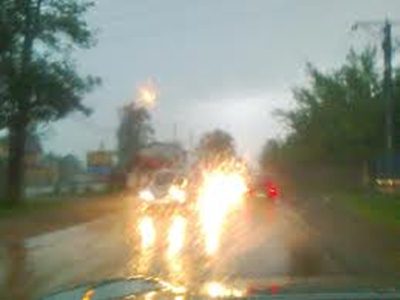 Wyładowania atmosferyczne, ulewny deszcz to zagrożenia w czasie, których możemy być narażeni na szereg niebezpieczeństw. Ulewny deszcz mimo dobrych wycieraczek ogranicza widoczność i utrudnia hamowanie, a intensywność opadów może spowodować zmycie naszego pojazdu z drogi. Burzą zazwyczaj towarzyszą porywiste wiatry i gradobicia, jadąc w takich warunkach narażamy się na uderzenie konarem, bądź przygniecenie drzewem.